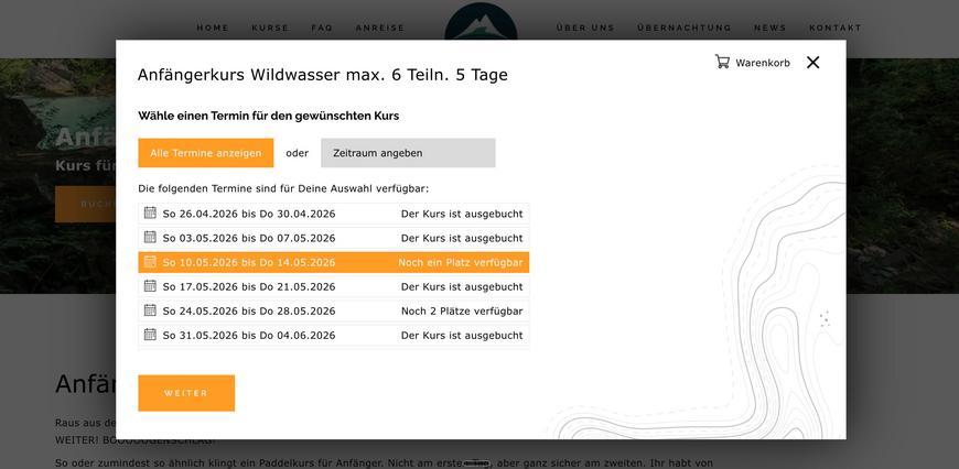 Kurse direkt auf der Website buchen – mobilfreundlich und klar.