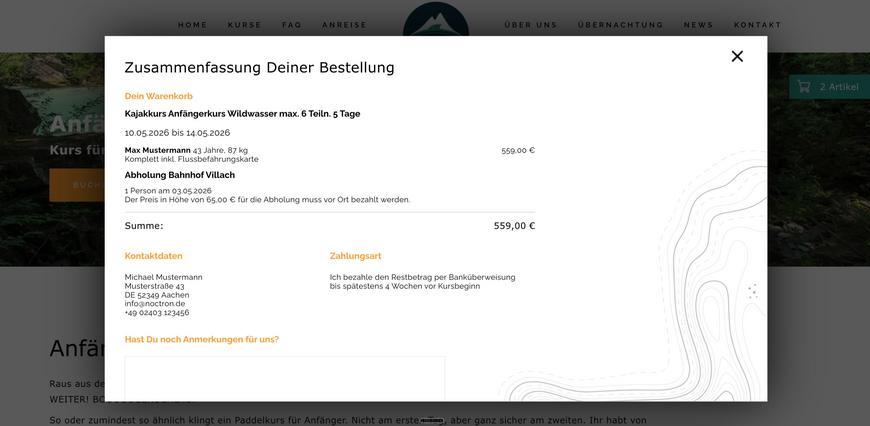 Direkter Kontakt zwischen Teilnehmern und Kajakschule.