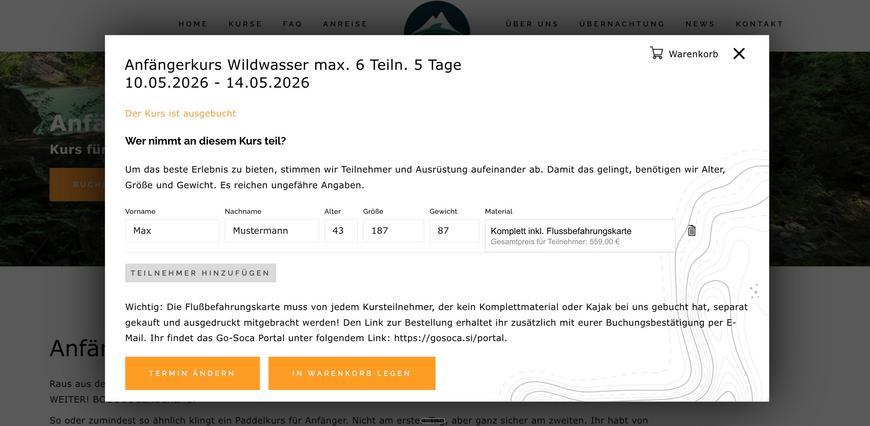 Kurse direkt auf der Website buchen – mobilfreundlich und klar.